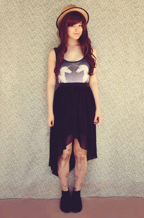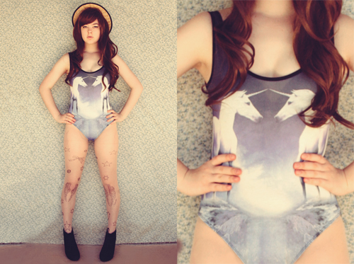 Hey guys! I bought this ASOS bodysuit the other day as soon as I laid my eyes on it - basically as a unconscious knee-jerk response to the ON SALE signs and the fact that it's got unicorns on it - then had immediate regrets (immediate as in 1 hour later so it was too late to cancel the order) because it was a petite-sized item. I started stressing that it wouldn't fit me as I am quite a bit taller than the recommended height for petite clothes! LUCKILY, I must I have an oddly short torso or something, because it fit perfectly! I also needed to show off the whole print in all it's spectacular, cosmic unicorn glory: