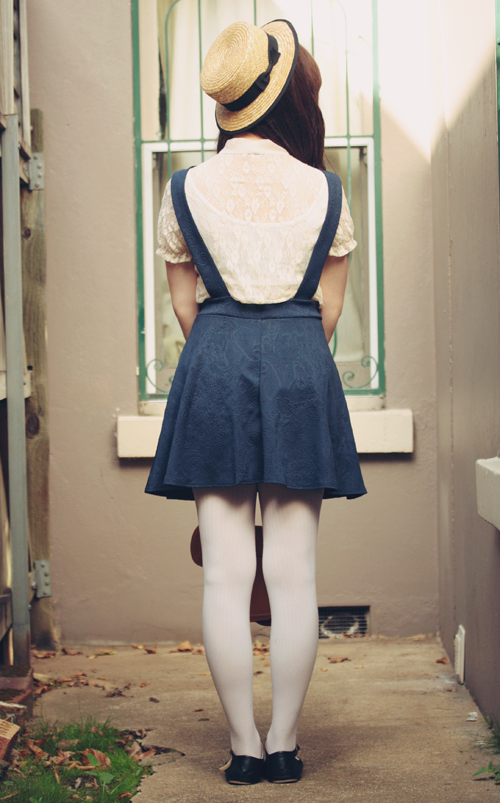 I love your outfit, especially the pinafore! It looks so cute and feminine with the blouse.