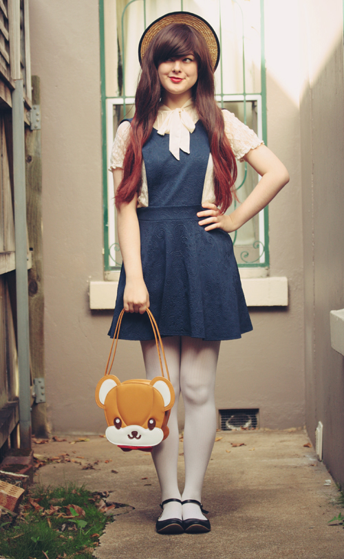 That blouse IS perfect with this pinafore, for sure! So so lovely. And that bear bag is obviously AMAZING. I was shocked when I read that you got it from Milanoo, though. I've read some awful, awful things about that company (I was looking for Lolita dresses too, and they have some great ones), but I'm glad you had a good experience. I'd probably still be wary about ordering anything from them, though that bear bag is tempting me!