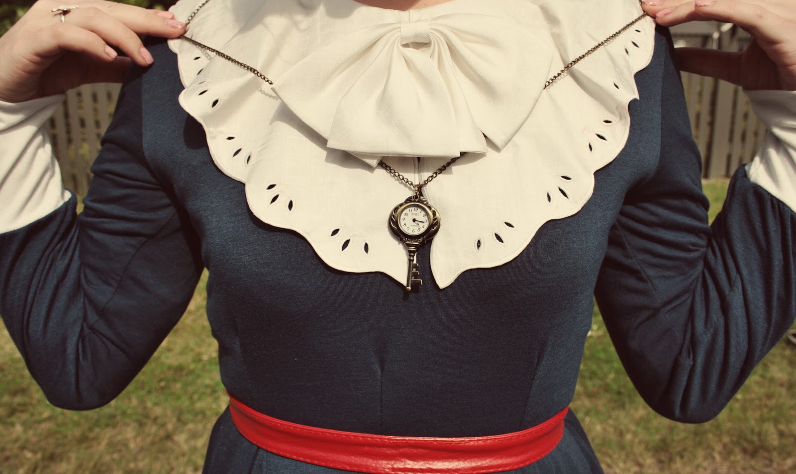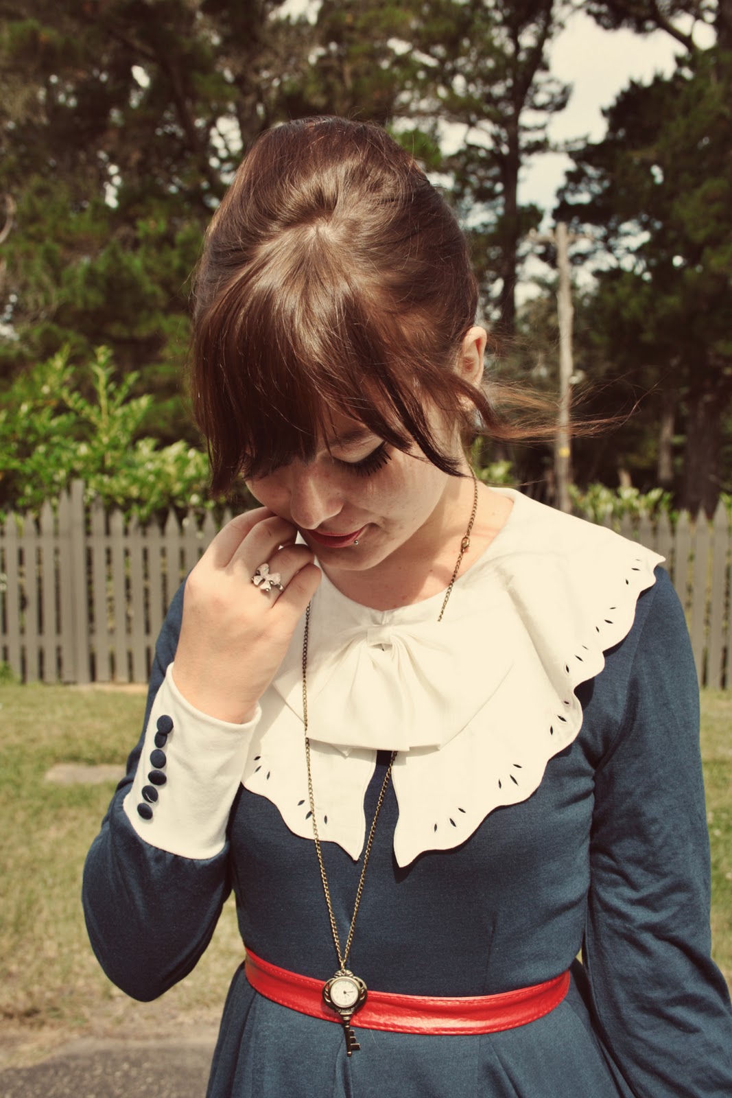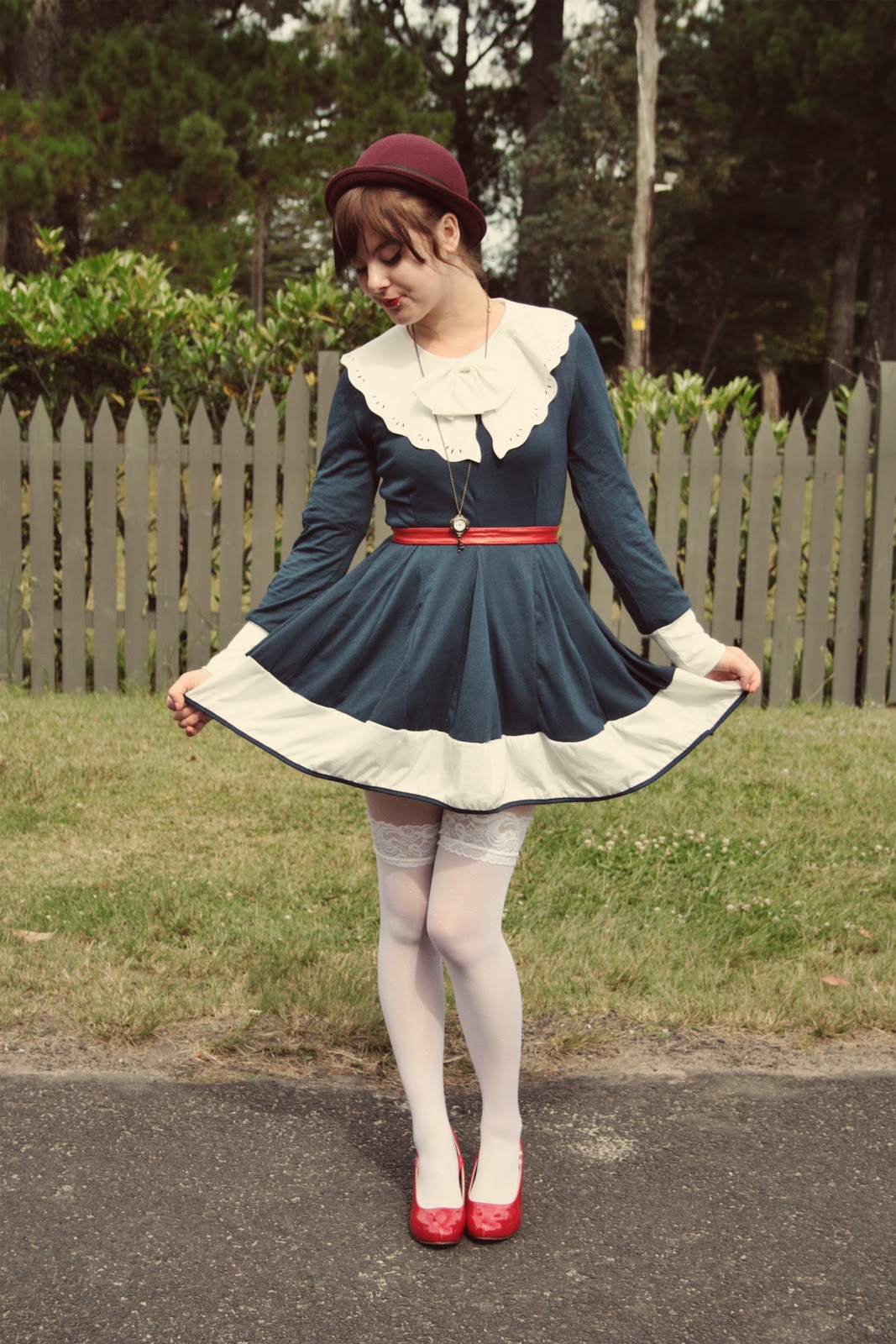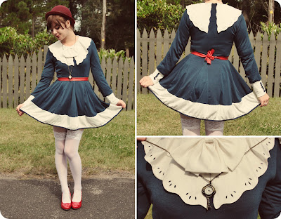 Dresses that already have collars are great to layer because they can make a whole bunch of other dresses look prettier :) However, when you look at how long this red dress is, you can realise how much extra fabric I had to hide up in that blue dress. Not so great if you don't want to look a little bulgier than usual. I tucked it up in a petticoat though, and that seemed to work out.