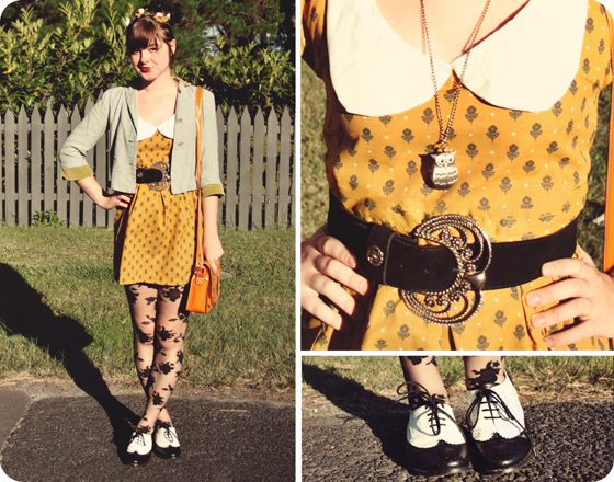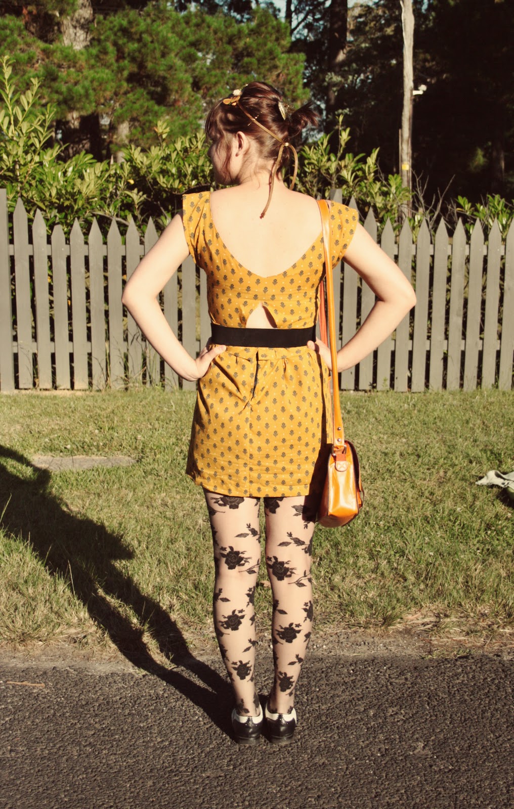 Dress - handmade, fabric from Spotlight, vintage mustard thread.