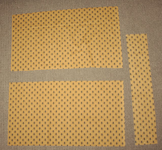 The two big parts are identical in size, and will make the front and back of the skirt. The smaller piece is for the waistband.