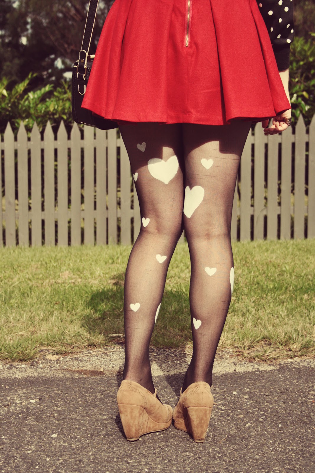 Just a quick outfit post. You can find the DIY and full post for these heart-print tights here.