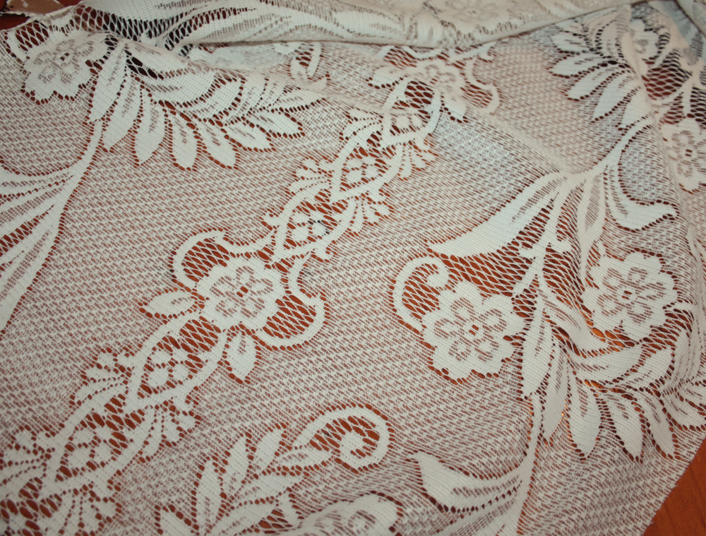So I thought that this is a pretty good way to update your wardrobe (the top half of it, anyway) if you're feeling a little bored with it. And it was (basically) free, as well! You just need to visit your local op shop and browse through all the old bits of fabric and upholstery (most thrift stores will have a sad looking basket sitting in a corner/under a table somewhere where you can find this) and put up with looking a bit mad because you're purchasing a whole bunch of unmatching, old lacey curtains. But these old curtains often have the most interesting and incredible patterns on them, and are just way too lovely NOT to be put to good use.