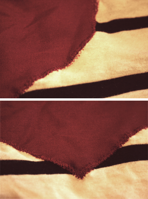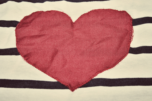 I went over my heart a few times to make sure it was well attached. Alternatively if you don't have a sewing machine, hand stitches also look quite effective (and should work just as well, if you have a bit more patience! But be wary: if your heart fabric easily frays, you will need to go around the outside quite a few times!)