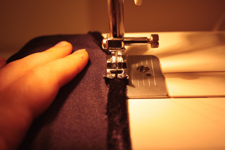 To hem, you just need to go along the entire outer edge, folding up about half an inch as you go along, lifting the presser foot and readjusting as you go.
