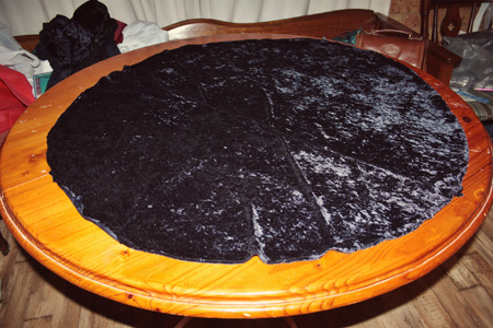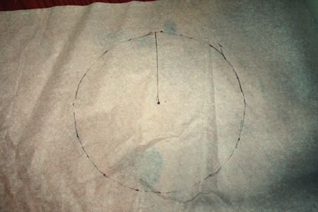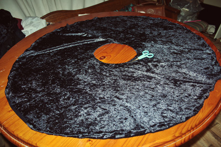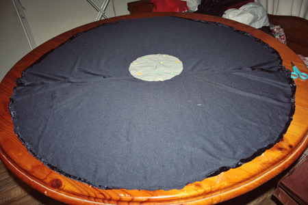 1. Cutout your large circle from your fabric. I get to cheat because I have a table which is perfectly round. If you don't have a round table though, this is how to measure your circle: