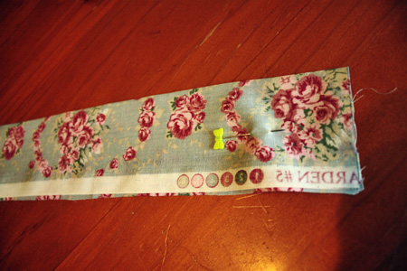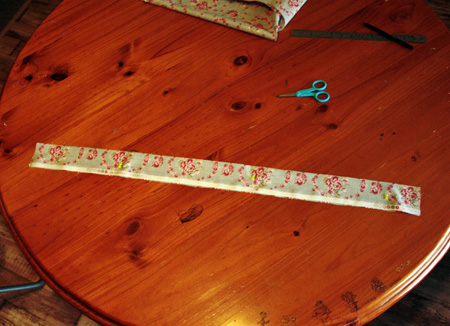 Cut your waistband to about 5 in x your waist measurement + 5 in (ie. my waistband was 5 in by 32 in).