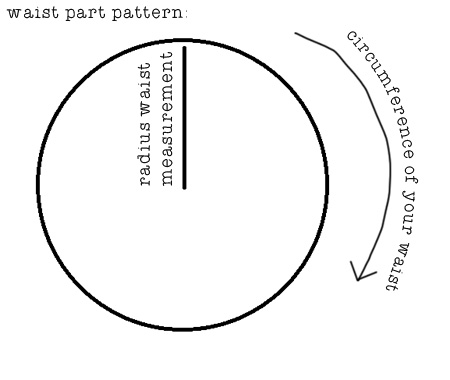 To get the radius of this smaller circle, you need to divide your waist measurement by 2 x pi.