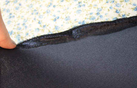5. Zipper/button insertion. If the velvet you used had enough stretch, and you can fit it on without too much difficulty, you can totally skip this step, sew together your waistband, cut off the excess waistband and you're done! If the fabric doesn't have much stretch though, you will need to insert buttons/a zipper following the instructions below.