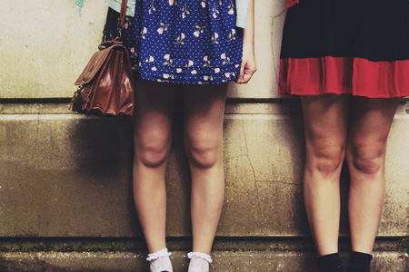 After taking about 70 shots of our knees and accidentally cutting off our heads, we gave up trying to get an outfit photo together. But I actually really like how the picture of our knees turned out - sometimes accidental shots are the best!