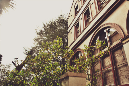 We maaaay have then "trespassed" into this pretty abandoned old school building, because we couldn't resist the gorgeous old school architecture and and pretty leafy walkways. We had to be pretty sneaky about sneaking in, but it was definitely worth it - it is the prettiest place in our town yet it's all boarded and fenced up! Such a waste!