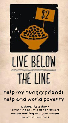 Before I go, let me tell you about Clare's challenge to "Live Below the Line" for 5 days - essentially living off $2 or less a day for 5 days.