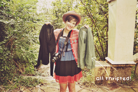 A couple of months ago, we spent a whole day exploring our favourite local charity stores, both ending up with massive plastic bags bursting with thrifted cardigans, sweaters, dresses, shirts and skirts, most of which we got for $1 each because every op shop seemed to have a sale going on! (We didn't plan that, but it was a very nice surprise!)