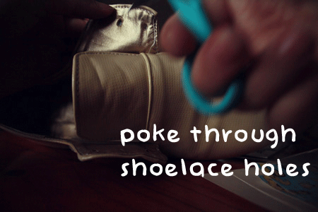 Poke through shoelace holes with scissors.