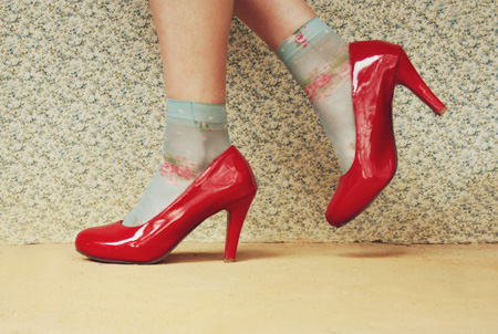 ReplyDeleteAbsolutely LOVE the way you've paired those delicate socks with red pumps. Great look on you!
