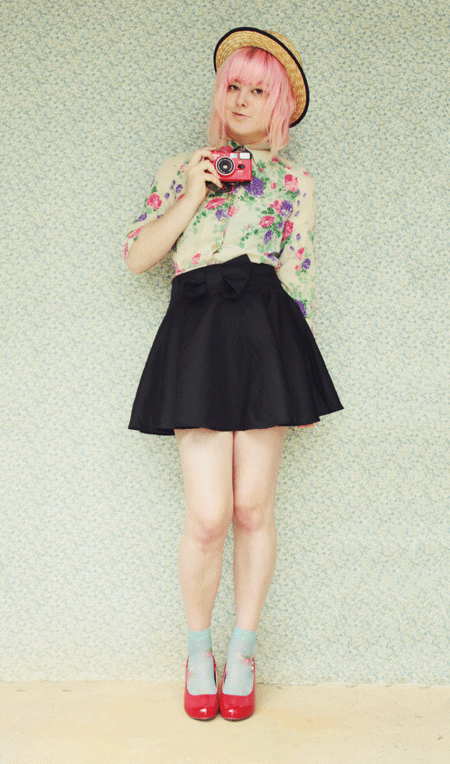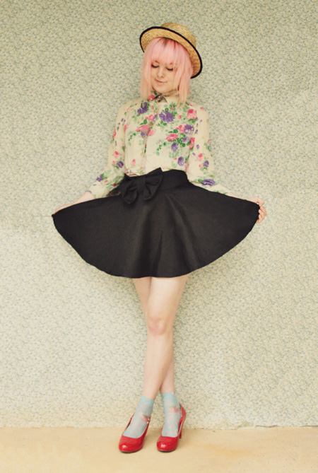 Double florals! I feel like this floral-y outfit would be appropriate for a picnic or garden party, hence the title. I matched this cropped vintage blouse (which I got in Japan) with these gorgeous sheer floral socks which the lovely Shop with Romi sent to me!