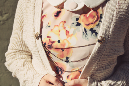 Whoooa look at this! Another sunny outdoors post! Crazzzy town. So I attempted to make some sweater clips after being inspired by the Dainty Squid, who always wears sweater clips - however mine were a little less than glamorous. They weren't too bad though, and I did make them while in the car, so I think I'll be fixing these ones by shortening the chain a bit, and then they'll work a lot better!