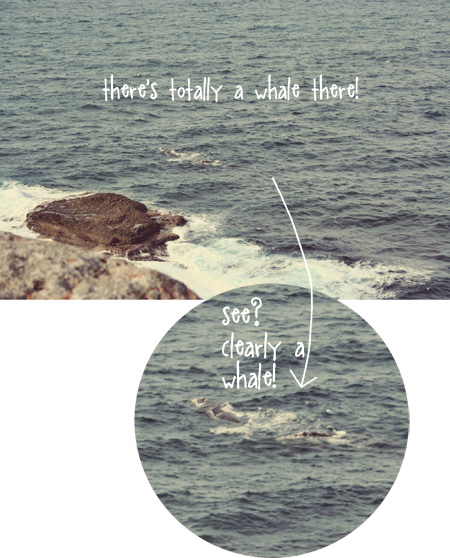 This is so awesome, it looks like a vintage ad for some coastal knit sweaters or something! I have gone whale watching before and I get pretty similar shots... the huge thing can leap out of the water multiple times and I still end up with some sort of photograph of a splash, sigh.
