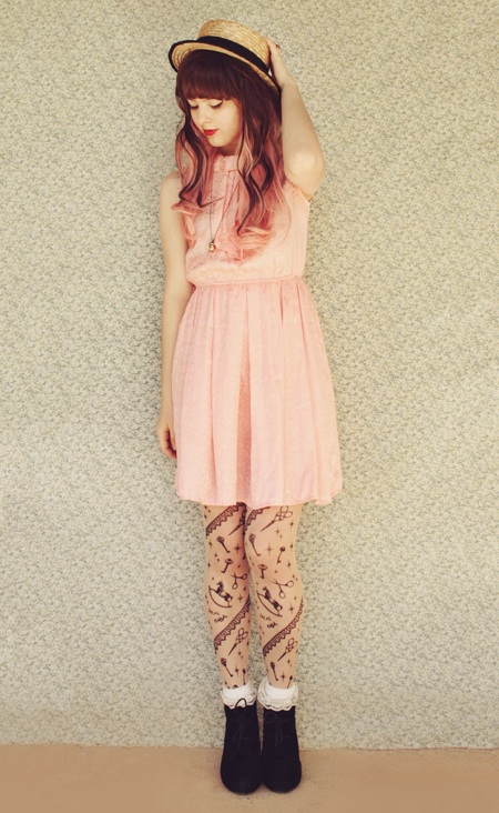 dress - Vintage necklace - c/o Oasap tights - c/o Oasap socks - Tutuanna shoes - Rubi Shoes hat - c/o Wholesale