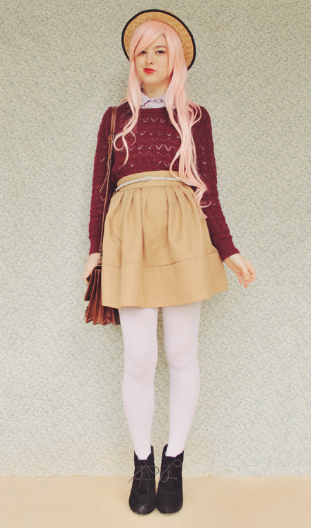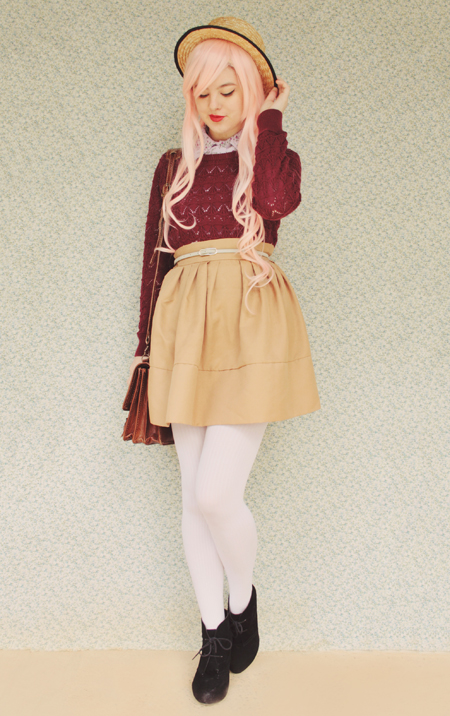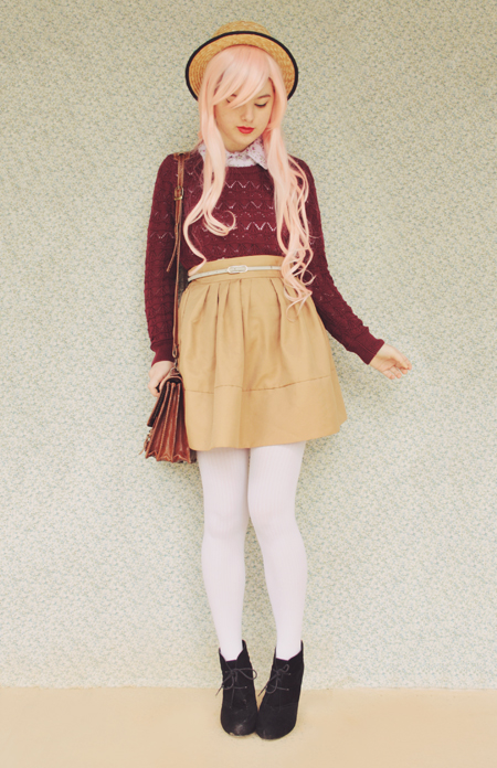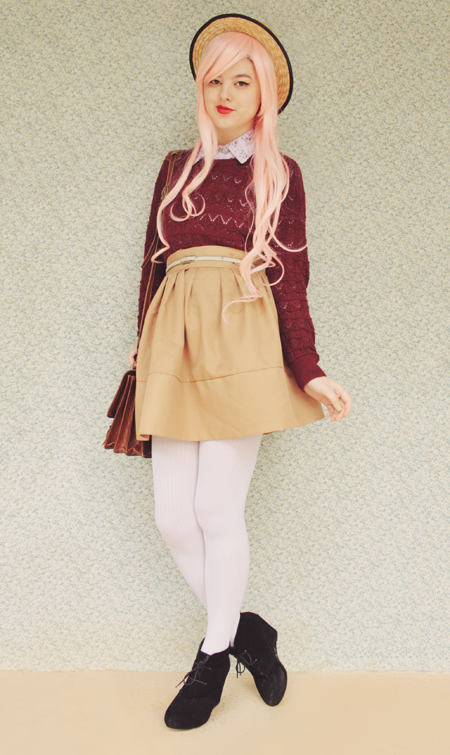 I love the wig :D I'm truly envious of how cute it looks on you and now I feel a strong urge to purchase one myself! I love the entire outfit, even if it is the wrong season for you. I often find myself longing after autumn outfits in spring when all the southern bloggers I follow are looking cozy and cute. The grass is always greener right?