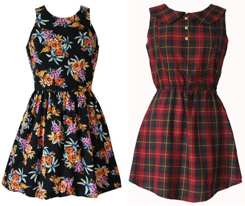 Even though I've been dressing a bit darker lately, including leather and black lipstick and the like, don't think I've forgotten my frilly, pink, pastel side. This dress is yet another beautiful design from the amazing Mod Dolly. Paired with this lace blouse I feel a little bit like I'm emulating a cupcake (definitely a good thing, cupcakes are the best). Also, a bunch of new dresses have just been added to the Mod Dolly store so you should go check it out! As I'm going through a bit of a 90s phase, I'm loving these two in particular: dark florals and all-over tartan with a peter pan collar?! I'm in love!
