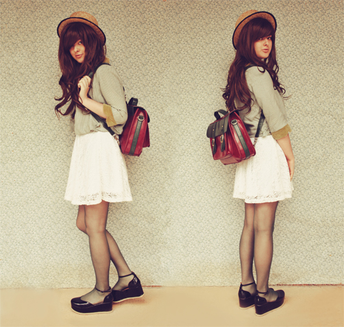 I love doing what I used to do as a little girl: spinning in a circle and watching the skirt swoosh, so I don't blame you for getting carried away with this. I love the bag pack, that deep red is really cool. And of course the dress is gorgeous. I'm now going to this science site you speak of because it sounds really cool :D