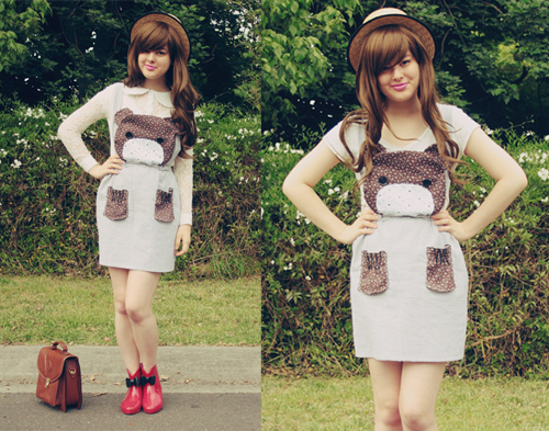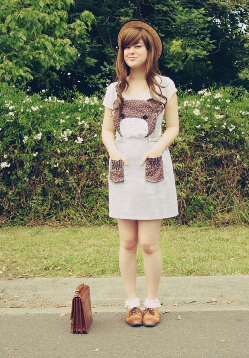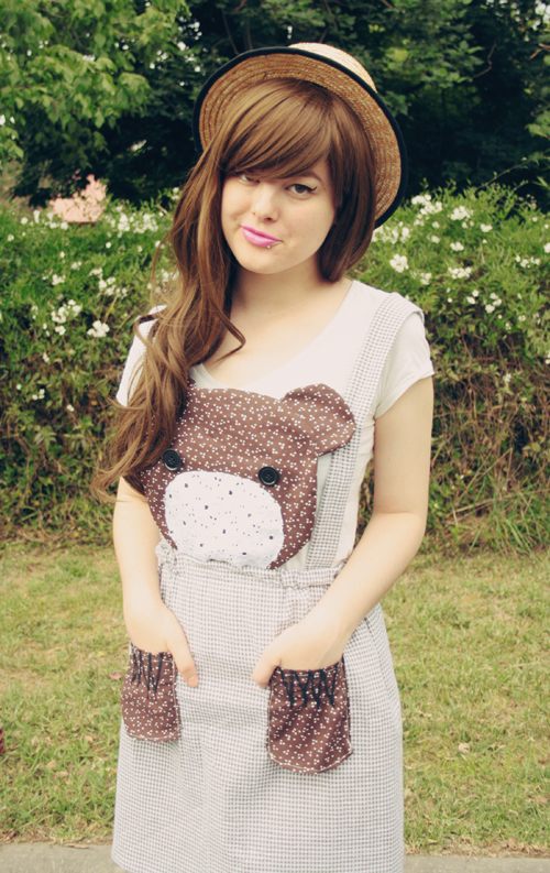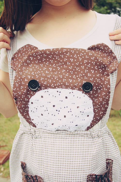 Hey guys! This DIY design has been pinned on my wall for around 2 months now, and today I was finally inspired to create it, not least in part after seeing Kathryn from Kitsune-kun's amazing Raccoon dress and hence also getting the idea for putting claws on my pockets! This little bear-face pinafore is my current favourite DIY creation (although basically every new DIY I do ends up taking place as my favourite, haha).