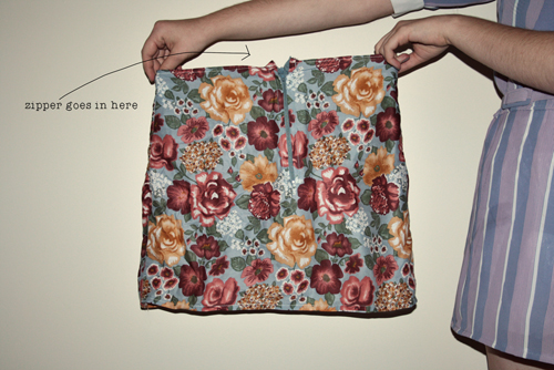 Make a slit the length of your zipper in the middle of the back of the skirt.