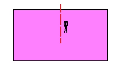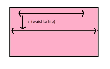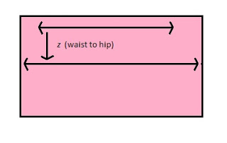 Choose which side you'll draw on (it doesn't matter which side). Then, draw your measurements out onto the fabric. Along the top edge, draw your waist measurement (x) exactly in the middle (you can get it exactly in the middle by halving the fabric and marking this with a small line, unfolding it, then halving your waist measurement and drawing each half-measurement out from that centre mark).