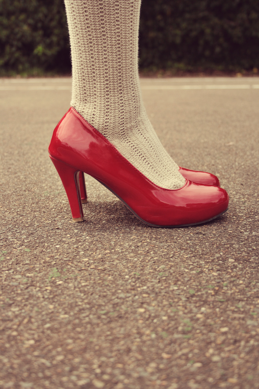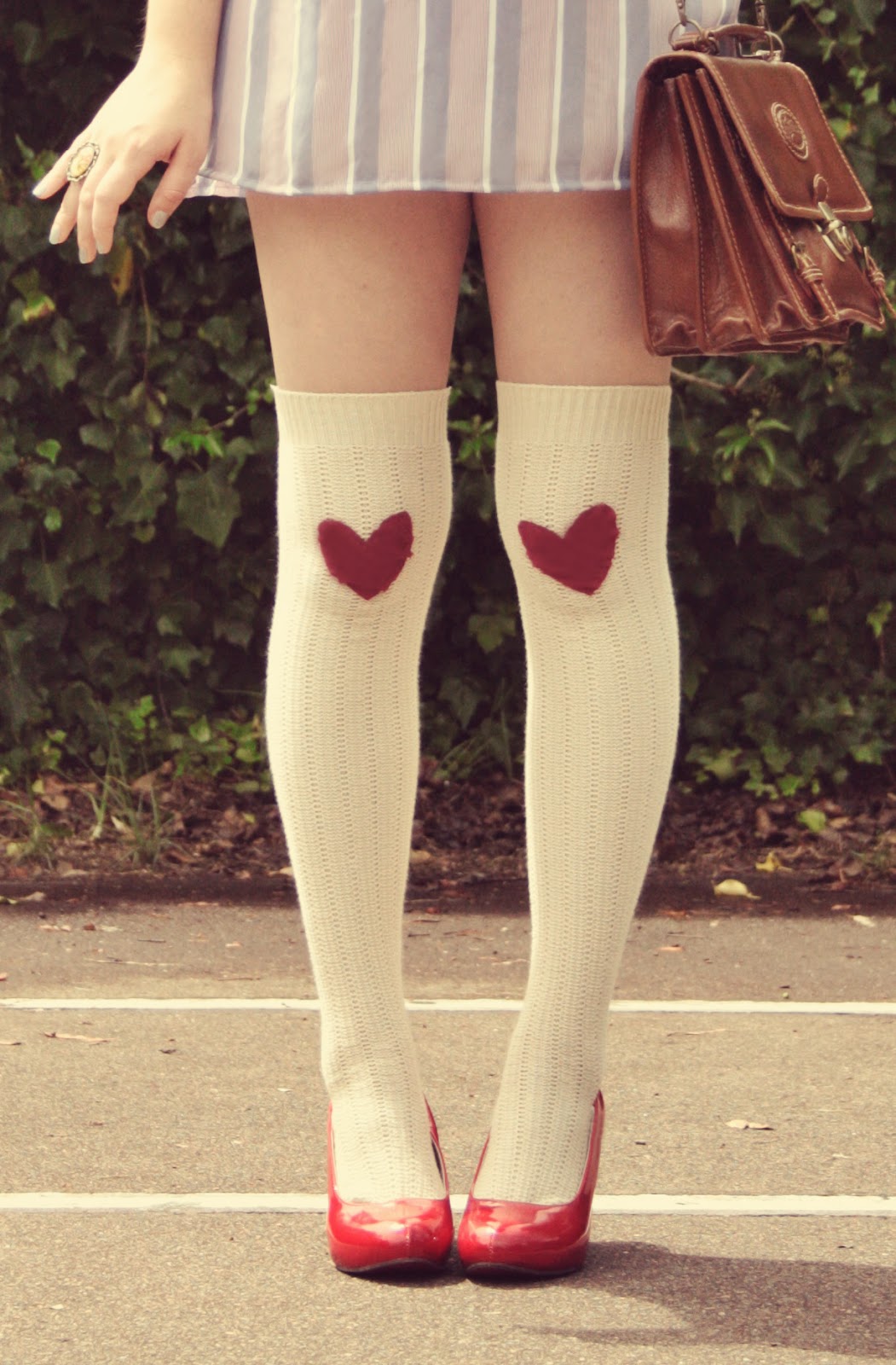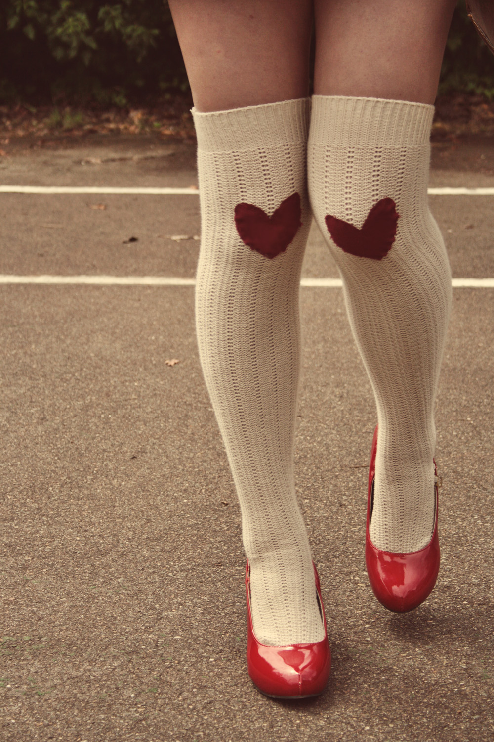 And these below are some cream knee-high socks that I added knee-patches to. I think they're pretty cute! I hand-stitched these because I thought it suited the fabric.