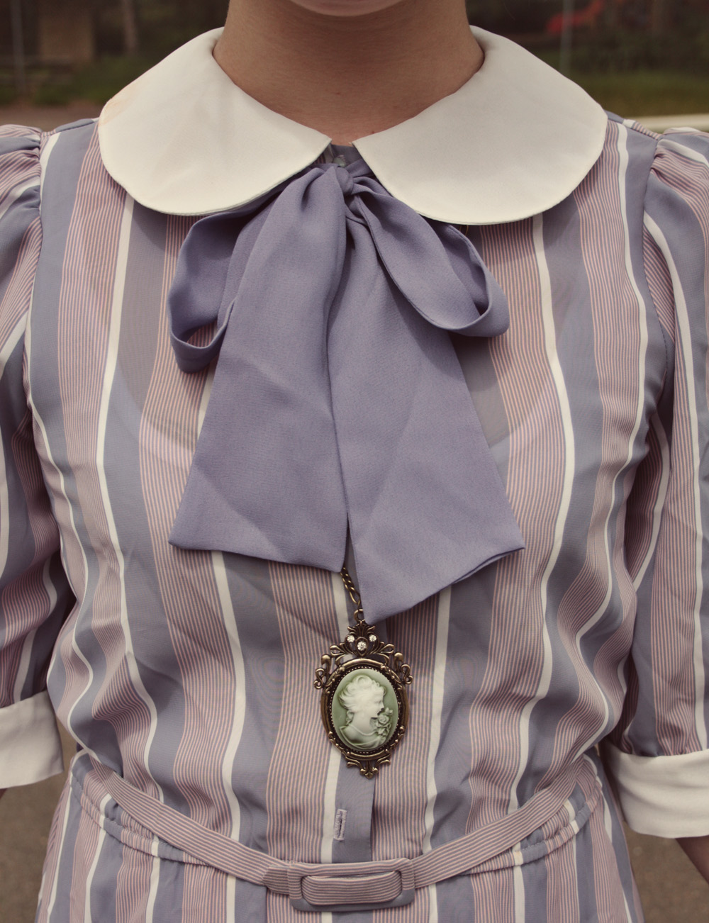 I bought this vintage dress for $5 from a small vintage boutique in Newtown, Sydney the other day. Isn't it incredible? It's basically perfect. Well, it was after I shortened it (it was considerably longer when I bought it, reaching the most awkward dress length at mid-calf. It's either got to be floor-length or very short, when I'm choosing a dress!) and washed (well, scrubbed, a lot) a suspicious stain off the collar. Ahh well, it's not proper thrifting until you can bring back stories about suspicious stains and the like! And there's also a button missing that I have to find a replacement for. Still: $5!!
