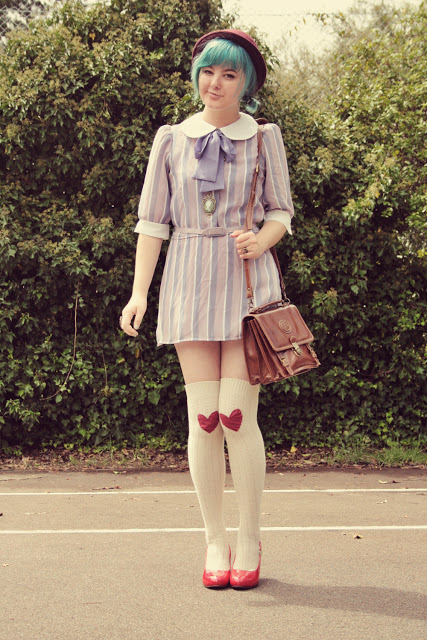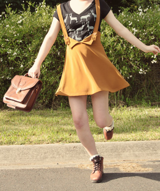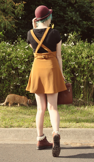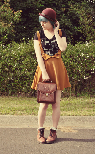 Here's some photos of it in an outfit: (My cat Rufus snuck into the last one! At least he goes with the dress.) Wearing: Shirt - DIY Bag - Vintage Skirt - Momo, Wonder Rocket (Tokyo) Socks - Tutuanna (Tokyo) Boots - Vintage Diana Ferrari Hat - Markets in Osaka Hope you're having a sweet day! xxx Annika |