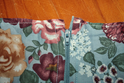 Sew in your zipper! If you don't know how to do this, this site and this site explain how to sew in a zipper much better than I could (with only my paint diagrams, anyway).