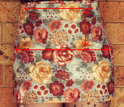 y is your hip measurement (measure around the fullest part of your bottom. if you don't measure around the fullest part, your skirt won't fit!)