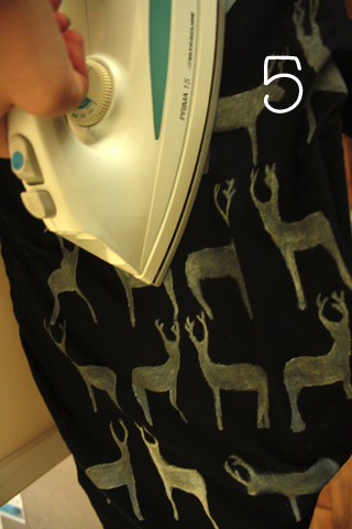 6. When you're done, let it dry for a few hours. Then, run over each deer with a hot iron for 1-2 minutes. This should make it washing-machine safe (as long as you started with a decent fabric paint).