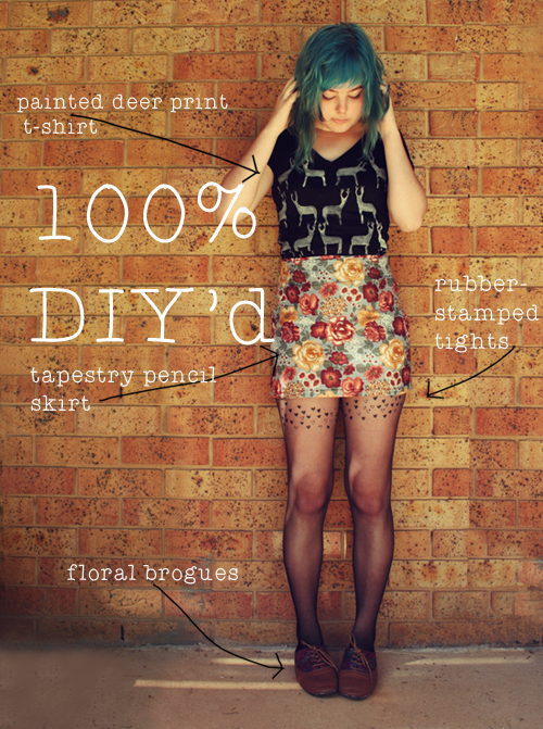The DIY for the tights can be found here, the shoes here, and I will be posting separate DIYs for the skirt and t-shirt in the next few days! This is just a sneak preview ;)