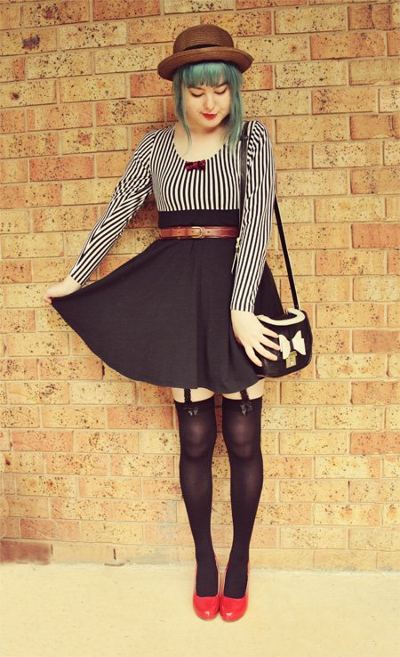 Although it didn't come looking this good, which is where the "DIY inspiration" part of this post title now has relevance - it was long and boxy and unflattering, so I shortened it, brought it in, and added the little bowtie collar using the fabric I snipped off from the bottom! Wearing: Dress - Vintage & DIY Belt - Vintage Bag - Vintage Shoes - Wholesale Socks - Tutuanna & DIY Cameo Brooch - Ebay Ring - From Japan Elk Necklace - stolen off boyfriend You should also totally vote for this look on chictopia, because I've entered it in a competition! Thank you lovelies! Are you all having a nice weekend? I sure have been, as I went to see my favouritest band in the world, Ball Park Music, last night! You must go and listen!!!! I challenge anyone to find a happier, more upbeat, sweeter band then them! And if you have the time, have a look at a collaborative/guest post I was part of today in this fantastic blog! Much love! Annika xxx |