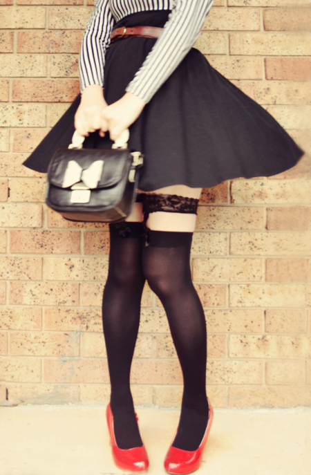 This bag from oasap.com has made so many appearances on this blog... it just seems to go with everything! And I could think of no better bag to go with my new black & white stripey dress.