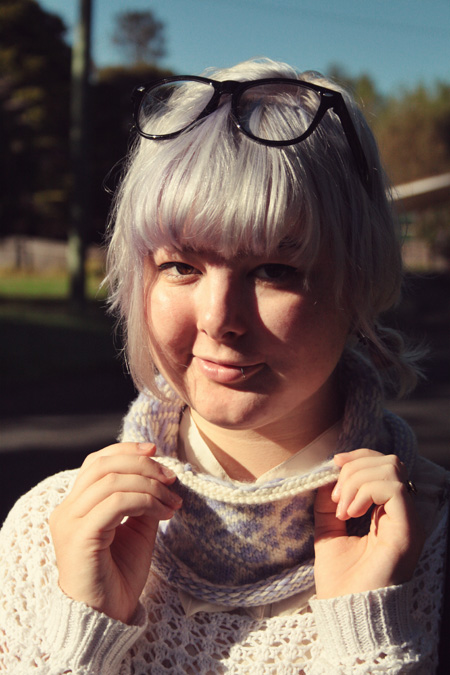 and although I don't usually wear scarves or cowls, I decided that I would give it a go. And I'm so glad I did! For one, it's been incredible on my early morning commute to university - its such an easy thing to throw on to keep me warm (and to sneakily fall asleep into - it's a really early morning commute). Also, it looks awesome with my new lilac hair! I've had so many compliments on how well they go together! I'm so super happy with it.