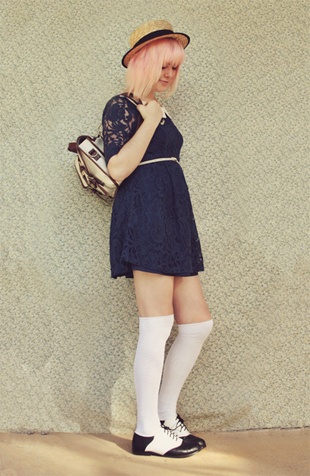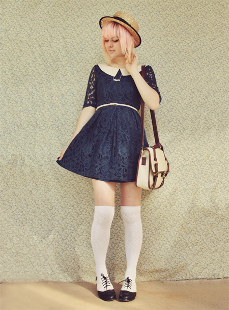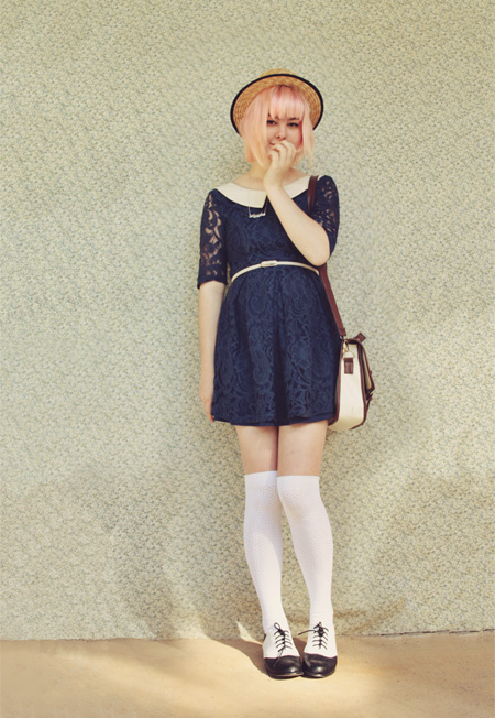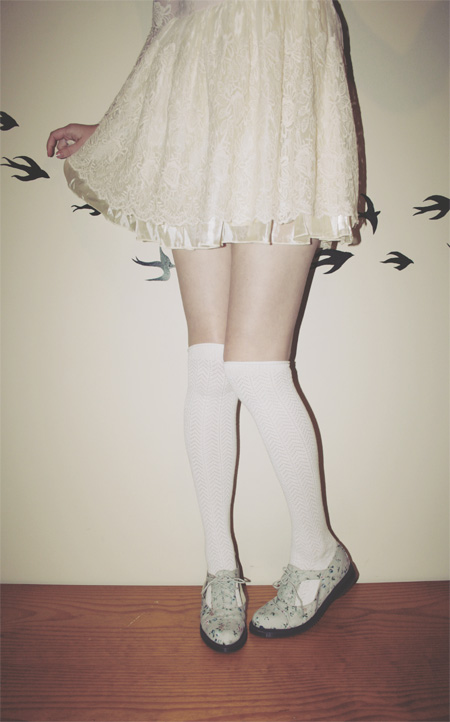 Wearing (above): Dress worn as blouse - vintage Skirt - Momo (Wonder Rocket) Tights - c/o Sock Dreams Hat - c/o Wholesaledress Pocketwatch Necklace - Vintage Shoes - Rubi Shoes Then there are these over-the-knee "O Chevrons". They're so delicate-looking and creamy, and go well with my black and white brogues, and with basically any dress I pair them with. Wearing (above): this post for details These gorgeous navy & mustard coloured socks (below) go just perfectly with my vintage brogues and new dress from Glamorous UK (another thing I am reviewing real soon!). Wearing (below): Dress - c/o Glamorous UK Bag - Asos Hat - c/o Wholesale Socks - c/o Sock Dreams Shoes - Vintage These subtly patterned creamy over-the-knees are also from Sock Dreams, and are, like the others, ridiculously comfy, as well as going with just about every single dress and skirt. AND THEY ARE MADE FROM BAMBOO. No joke!! They're so incredible! Thanks heaps to Sock Dreams for sending me these awesome socks. I can definitely recommend them to my blog readers, because they're well made, comfy, warm and also pretty cheap (most pairs of socks and tights go for around $10, and some are even cheaper). And because it's coming into winter for us southern hemisphere ladies (it's finally cold outside! Boooo! But yay because now we can wear pretty tights!)... Sock Dreams gave me a discount code for anyone living in Aus and NZ, for 50% off shipping. Discount code: PINECONE Click here to go to their website. Awesome, right? I hope you're all having a spectacular day! xxx Annika |