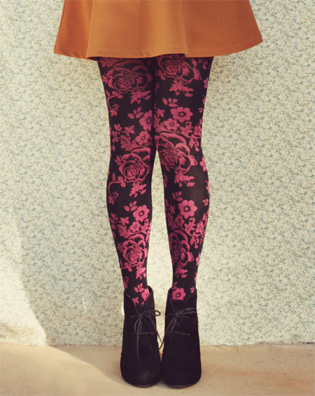 In the above photo, I am wearing their floral tights in plum.
