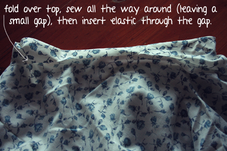 I made a pretty suspender skirt the other day, and I want to share with you how I did it. All you need to do is follow my "how to make a circle skirt" tutorial (here), but STOP before adding the waistband. Instead of adding a waistband like in that tutorial, we are going to do this: - Make the inner circle much larger than your waist - so add a couple of inches to the diameter. Make sure you can easily get it on over your thighs (this was a bit of a problem with the last tutorial). - Then, do this to the inner circle: It's kind of a pain to do because it's a circle, but it can be done. So persevere! Here's some neat instructions for creating a waistband tube thingy and inserting elastic. - Then we need to add suspenders. This just involves cutting out two long strips like this (make sure they will go from your waist up to your shoulders and down again, then add a little bit more): folding in half lengthways, and sewing all the way down the edge of both folded strips like this: then turning these strips/tubes inside out (here's a link to a really good tutorial on that part) and sewing them onto your skirt waistband, wherever you want the straps to sit!