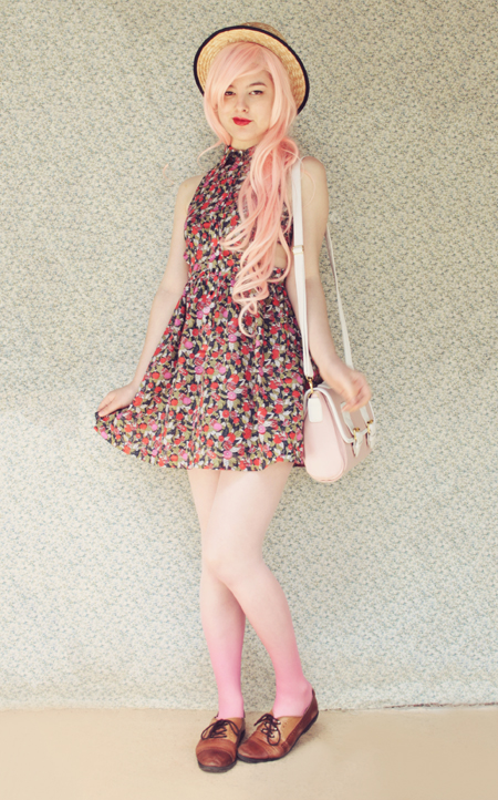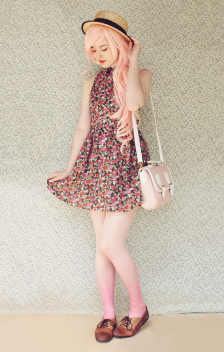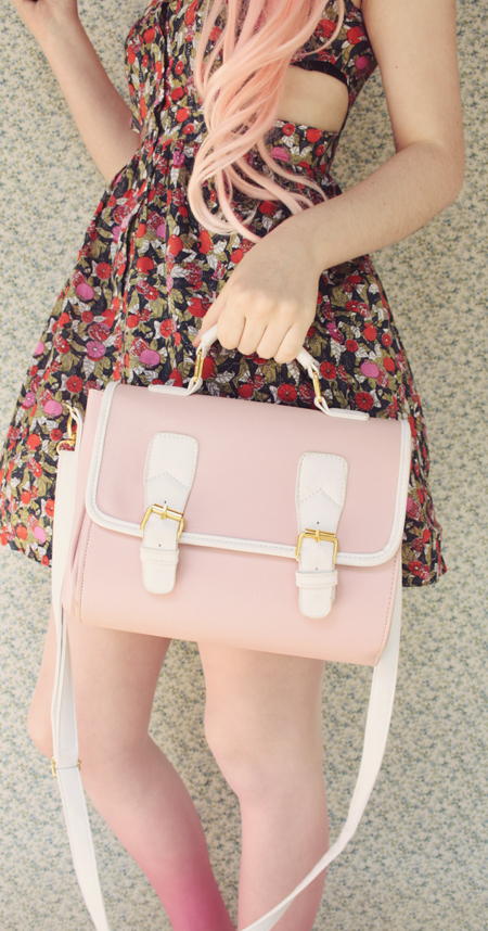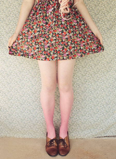 Remix 1.1: I mixed this fruit-print dress with a pastel pink satchel bag and the prettiest pink dip-dye tights. The tights are still on sale, and there are a couple left if you want to get yourself a pair!