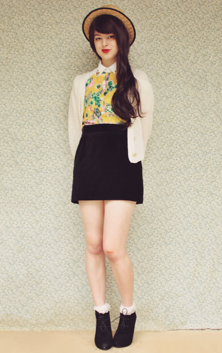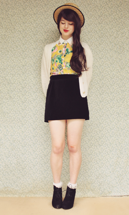 blouse c/o Oasap, collar clips from Ebay, skirt from a friend, shoes from Rubi Shoes, cardigan from Forever 21.