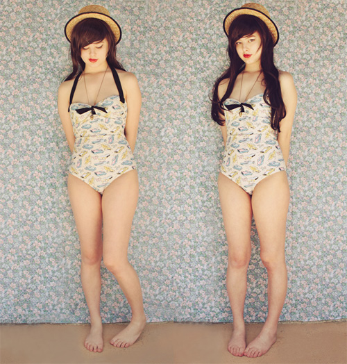 Word of warning about this swimsuit if you're thinking of getting it - it doesn't come with built in bra cups. I had to sew some in (I cut up an old bra to do this) but that worked really well! You could also cut open the lining in the bodice and insert some of those swimming top insert things. But just so you know ;)