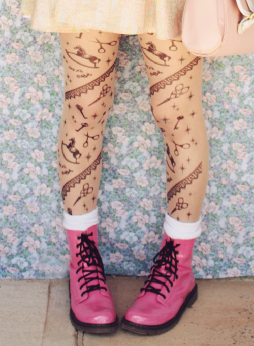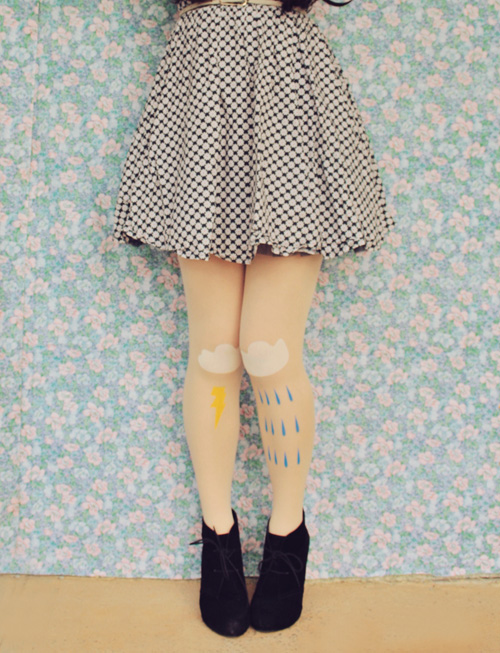 But anyway these tights - oh these tights. They're so preetty. I could have probably easily DIY'd some myself like this, although coloured paint never seems to work as well. Plus, painting tights takes forever, as anyone who ever tried my DIY painted tights tutorials would know. And I'm lazy/crazy busy with uni right now. So pretty tights with all the work already done is just fine by me.