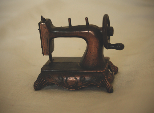 And keeping with the idea that I'm a small, old porcelain doll, here's a teeny tiny sewing machine that this porcelain doll alter-ego of mine would sew her clothes on. *spooky*