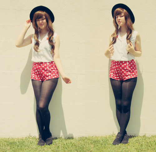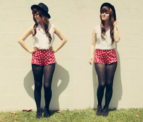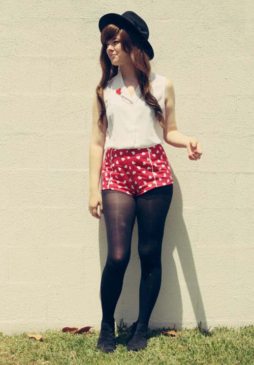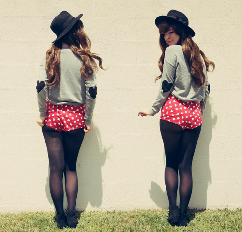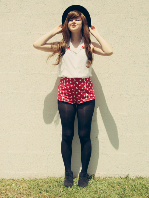 I really like these red heart ones - you all know I'm obsessed with anything heart-printed or heart-shaped - so consequently I've been pairing them with every single outfit lately. And I have to admit that this outfit probably went a little over the top with heart print items - my clips, my shorts AND my sweater. Ah well. One can never wear too many hearts.