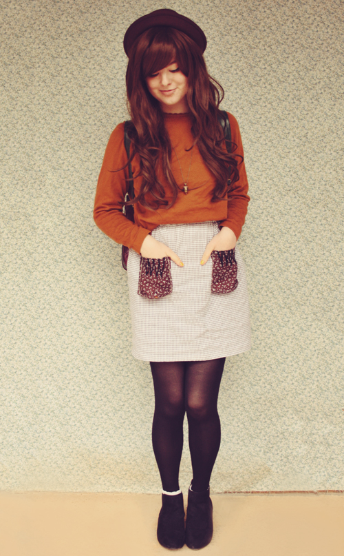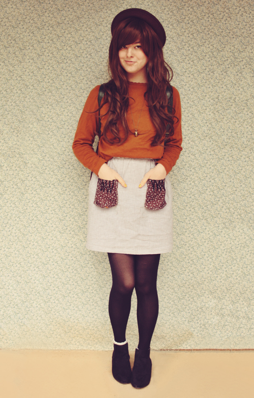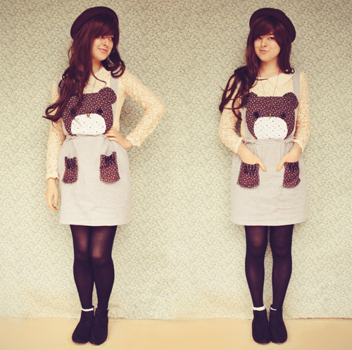 It's cold :( But I happen to love this outfit, so nevermind. Another mix of neutrals and browns - I love this kind of colour combination! I also found the perfect blouse to go with my handmade bear pinafore.